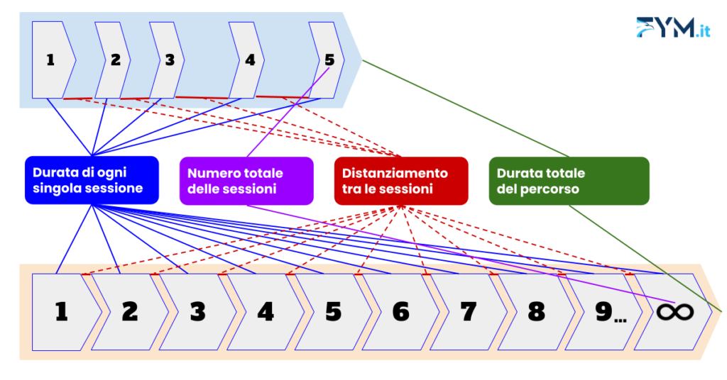 La prima modalità calcola il tempo che intercorre tra la prima e l’ultima sessione. Eventuali follow up informali via telefono o whatsapp, non vengono calcolati. Mentre vengono calcolate eventuali sessioni di follow up.